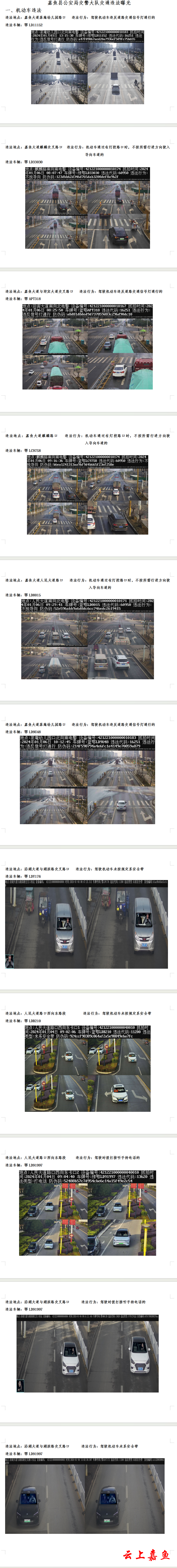 嘉鱼县公安局交警大队交通违法曝光