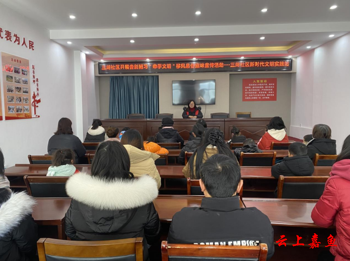 云上嘉鱼报道(全媒体记者皮道琦)1月25日,鱼岳镇三湖社区新时代文明实践站组织辖区家长和儿童开展“告别陋习牵手文明”移风易俗宣传活动,大力弘扬勤俭节约的传统美德。