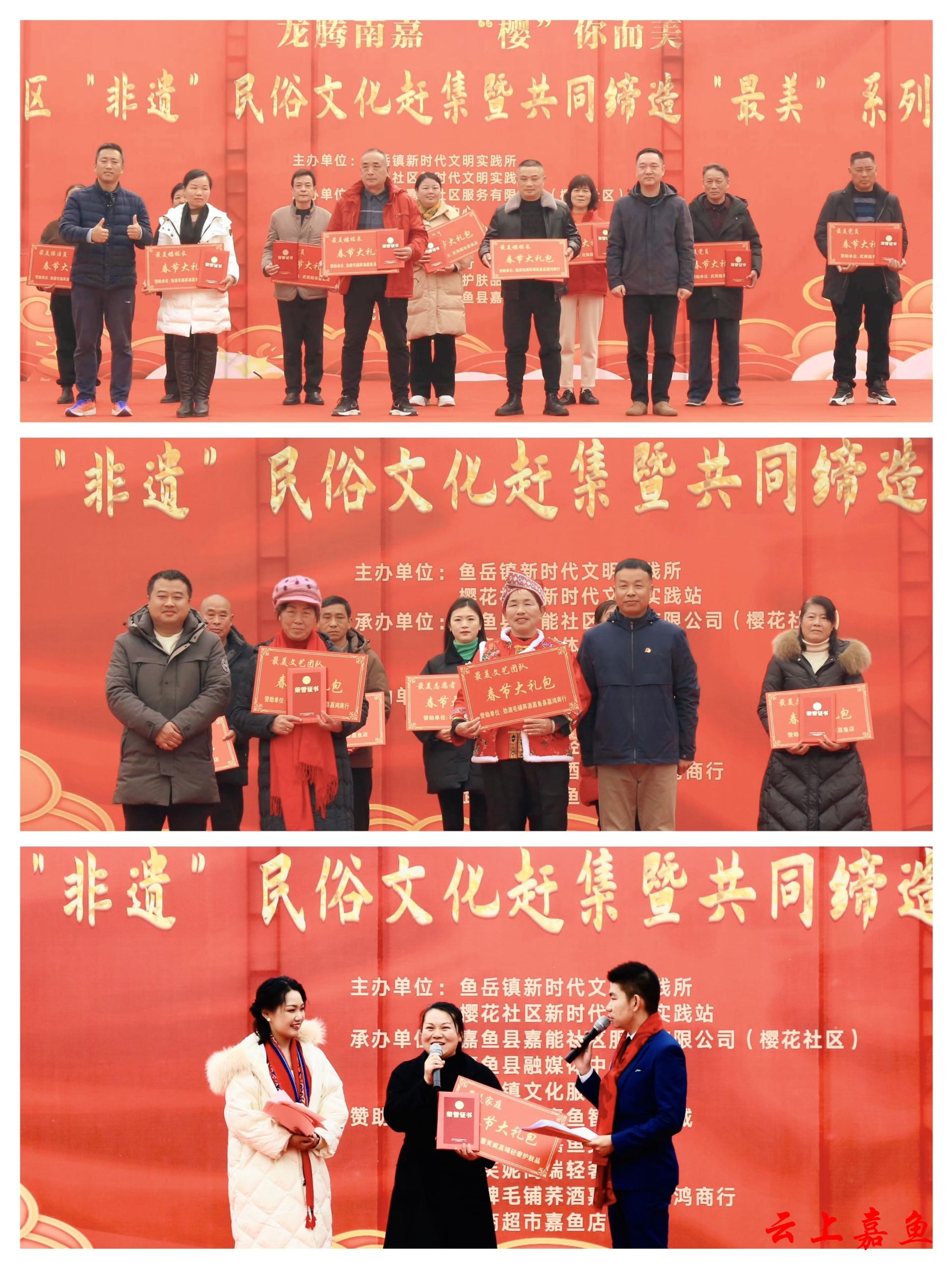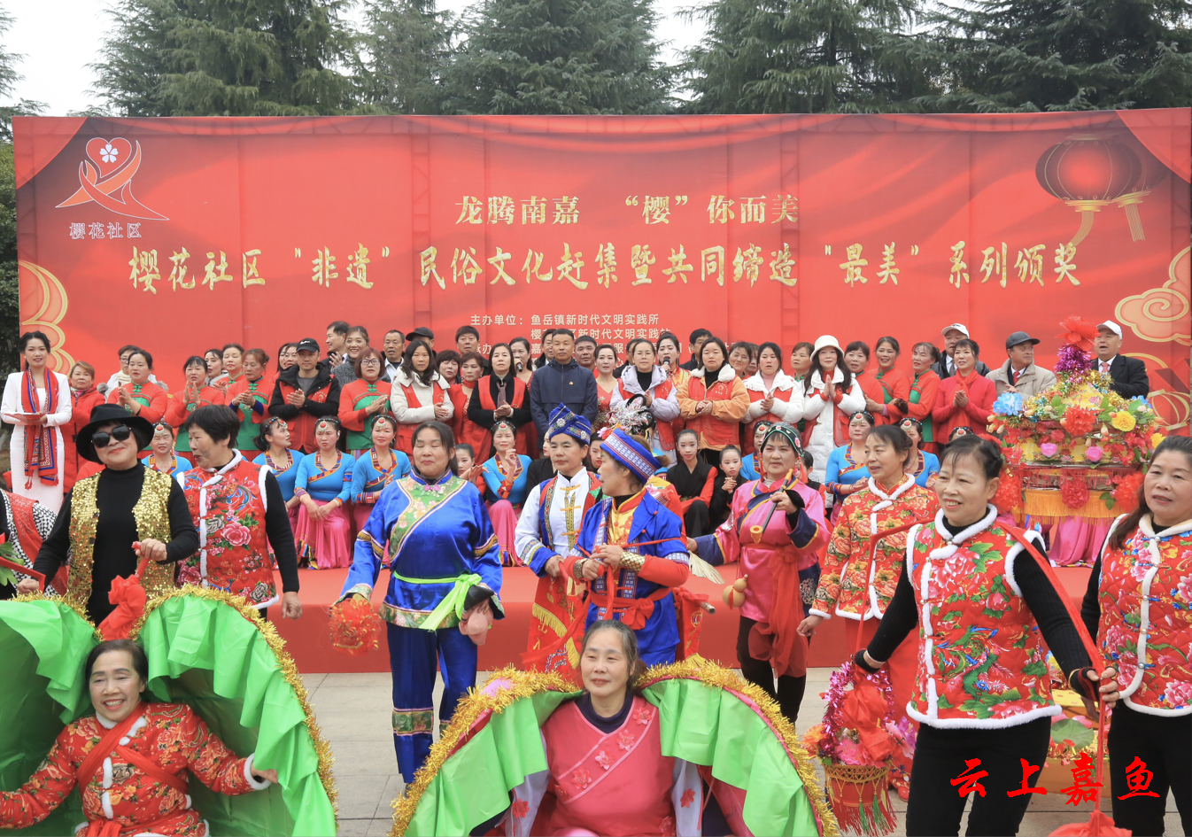 此次活动由鱼岳镇新时代文明实践所和樱花社区新时代文明实践站主办,县融媒体中心、鱼岳镇文化服务中心和嘉鱼县嘉能社区服务有限公司(樱花社区)承办,现场近500人欢聚一堂看“非遗”、评“最美”,热闹非凡、精彩无比。