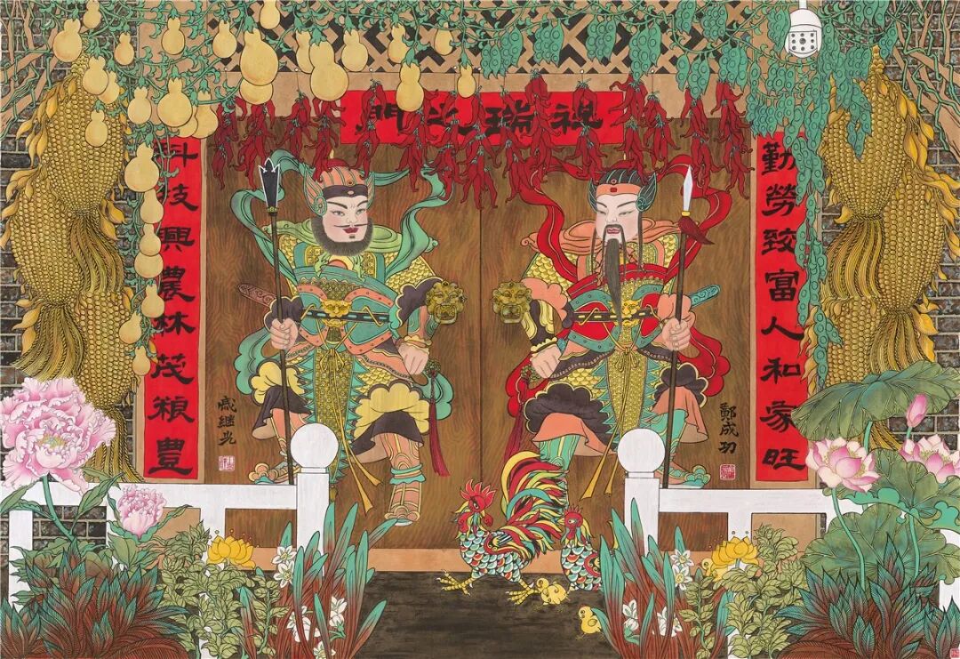年画(new year paintings)是中国绘画形式之一,是中国的独特艺术语言,也是极具代表性的中国民间艺术。年画描绘人们的所见所闻,祈福五谷丰登与美好生活,是老百姓喜闻乐见的艺术。主要在新年时张贴,装饰环境、营造气氛,并蕴含新年祝福、吉祥喜庆之意。