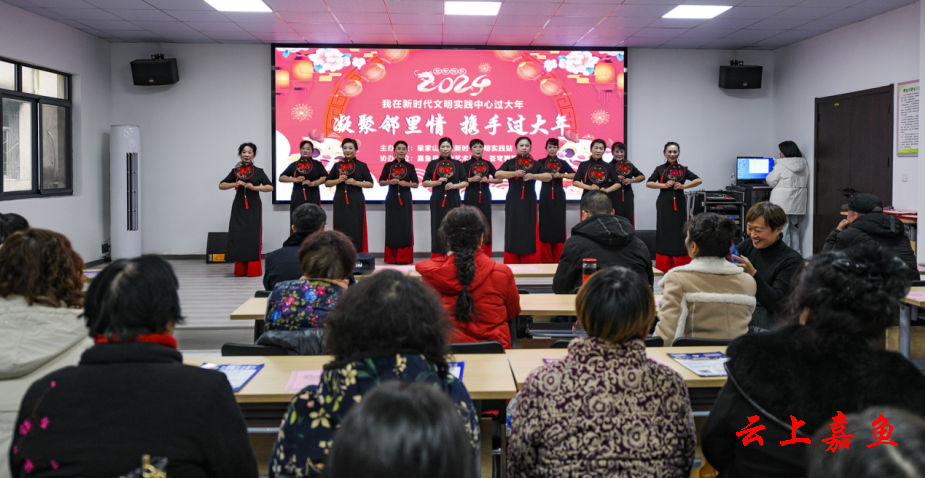 云上嘉鱼报道(全媒体记者雷平 通讯员赵宇峰)2月2日,由鱼岳镇梁家山社区新时代文明实践站主办,嘉鱼县模特艺术协会、苍穹舞蹈队协办的以“凝聚邻里情 携手过大年”为主题的文艺汇演活动在梁家山社区举行。