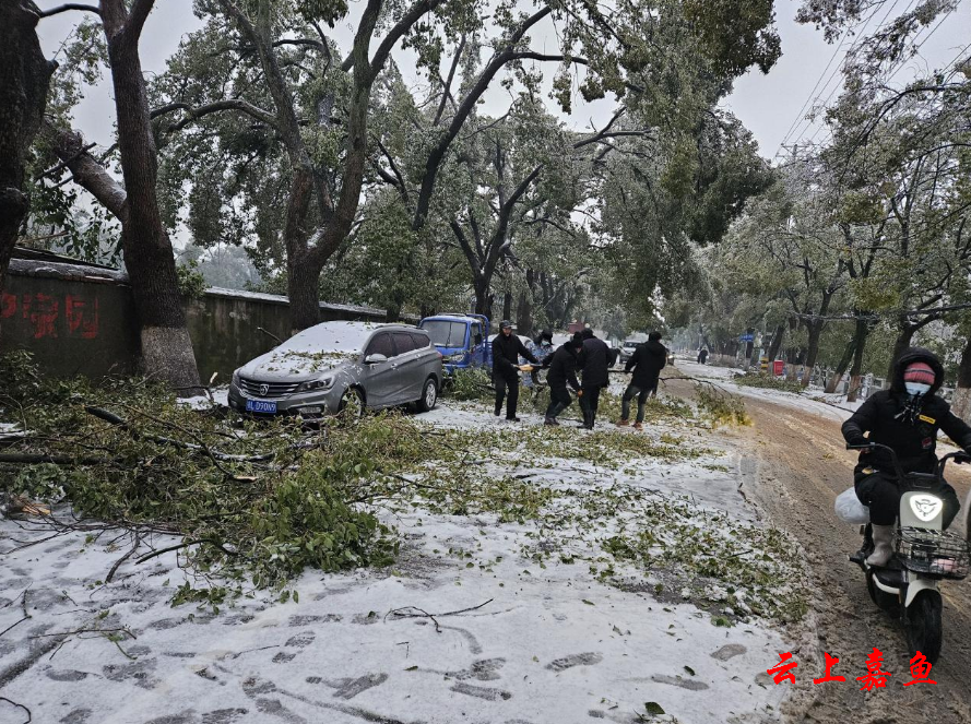 云上嘉鱼报道(通讯员梁宁)一夜降雪为整个镇区带来一片雪白,冻雨也为树枝换上了一身晶莹剔透的厚冰,为保障镇区内道路畅通安全,维护群众正常的生产生活,2月4日清晨,新街镇机关、各村(社区)及镇直部门志愿者,纷纷拿起工具进行除雪、挪树枝等清障活动。
