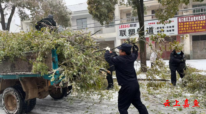 为确保广大群众平安出行,嘉鱼县公安局交警大队迅速启动恶劣天气道路应急预案,在辖区主要干道、关键路口加强疏导分流,同时主动加强与市政、城管等部门的信息互通,联勤联动,在易结冰路段铲雪除冰,及时清理被雪压倒的树枝,积极帮助被困车辆撤离,确保道路交通安全有序。