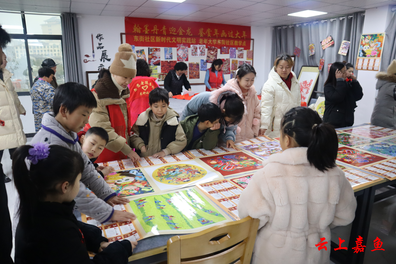 翰墨飘香,书韵流传。2月2日,走进鱼岳镇东街社区党群服务中心三楼,现场热闹非凡,原来由东街社区新时代文明实践站、老年大学东街社区教学点联合举办的“翰墨丹青迎金龙·鉴赏年画过大年”新春送福系列活动在此火热开展。