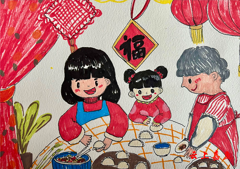 镜头中的孩子们可能还有着些许稚嫩,但他们的表达自信而有力,洋溢着青春的气息;再看孩子们的书画作品可能还有些许笔触不均,但他们的作品充满趣味,绘出了自己眼中的新春佳节。