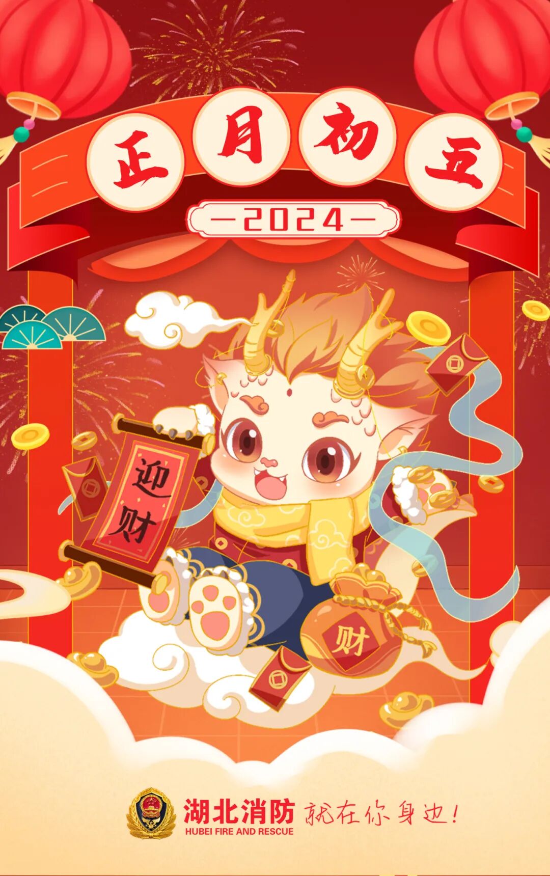 大年初五 俗传是财神诞辰 为求利市,图吉利 我们中国人会以各种方式 迎接财神,祈福纳祥 因此,每年正月初五 我们会打开大门和窗户 燃香放爆竹,点烟花 迎接财神到来,显灵降福 喜迎财神 也不要忘了消防安全哦! 来源:湖北消防 汉江消防
