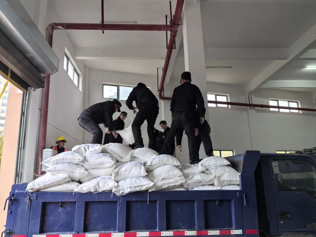 上午11点04分,位于咸安区官埠桥镇泉湖村的湖北交投京珠运营公司咸宁北工区,一辆满载货物的卡车缓缓驶进。待卡车停稳后,等候在一旁的工作人员紧锣密鼓地开始卸车工作。车上装载的是33吨融雪剂,将用于应对即将到来的新一轮低温雨雪冰冻天气。