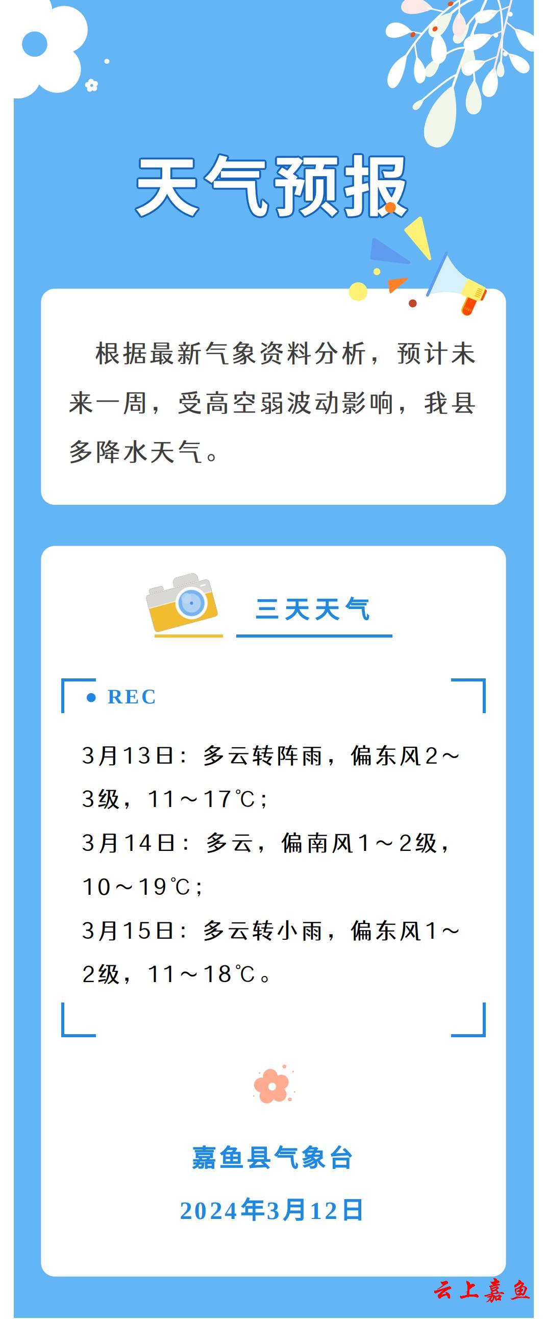 2024年3月12日嘉鱼天气预报