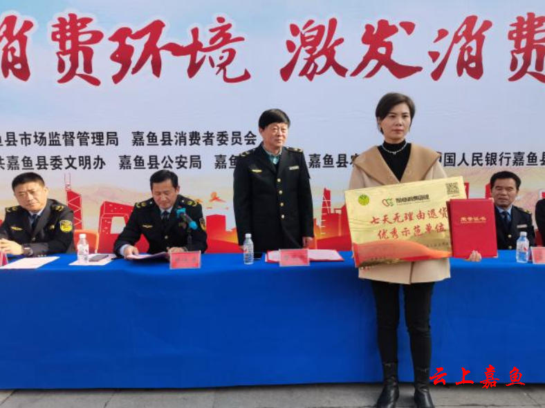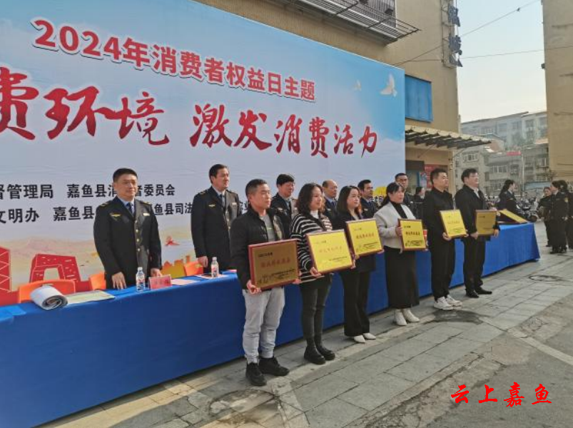 活动宣读了2024年嘉鱼县“荆楚放心购承诺”公益活动倡议书;并为省级“放心消费创建示范单位”“线下购物七天无理由退货优秀示范单位”、市级“优秀消费维权单位”和“最美消费维权人物”“湖北样板厨房”分别进行了授牌。