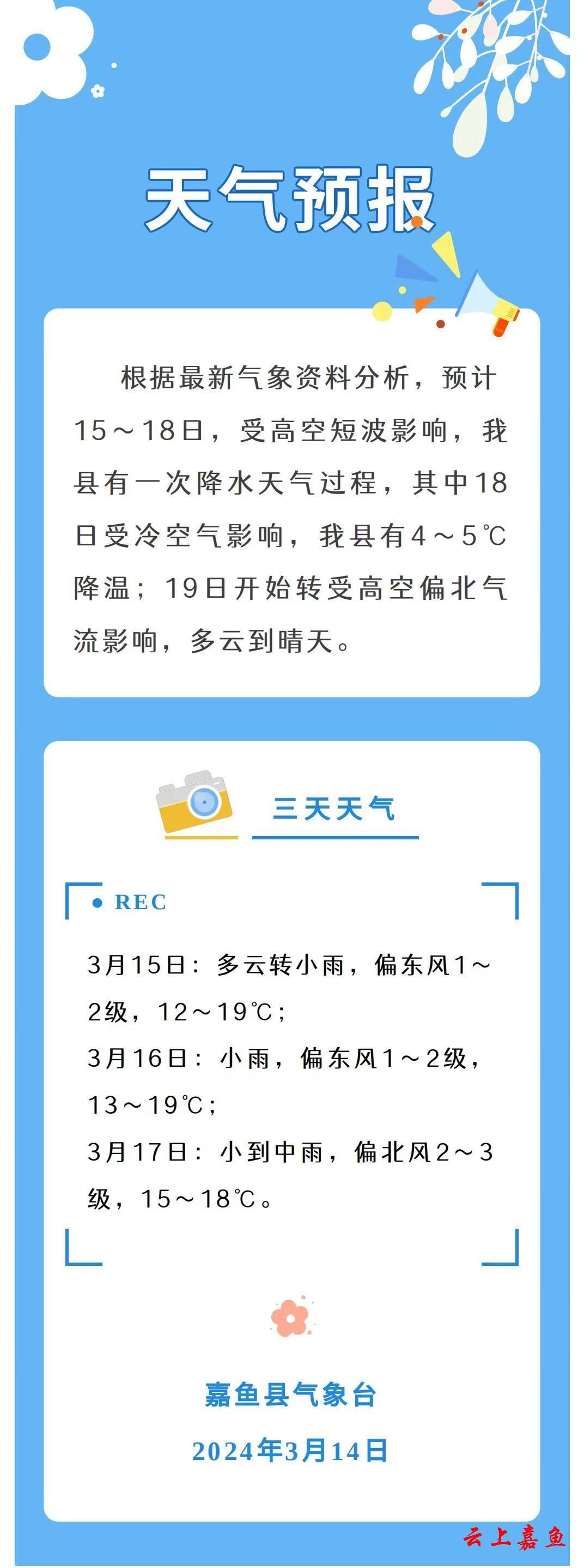 2024年3月14日嘉鱼天气预报
