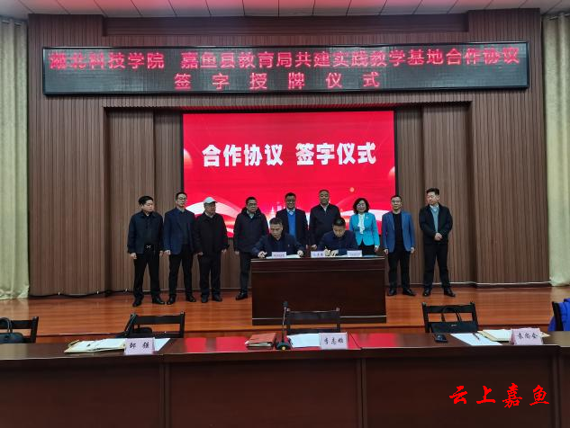 仪式上,签订了《湖北科技学院嘉鱼县教育局共建实践教学基地合作协议书》;对嘉鱼县实验小学授牌“湖北科技学院教科研基地”;对嘉鱼县第二中学、实验中学、第一初级中学、蓝天中学、潘湾中学分别授牌“湖北科技学院师范生教育实习实训基地”。