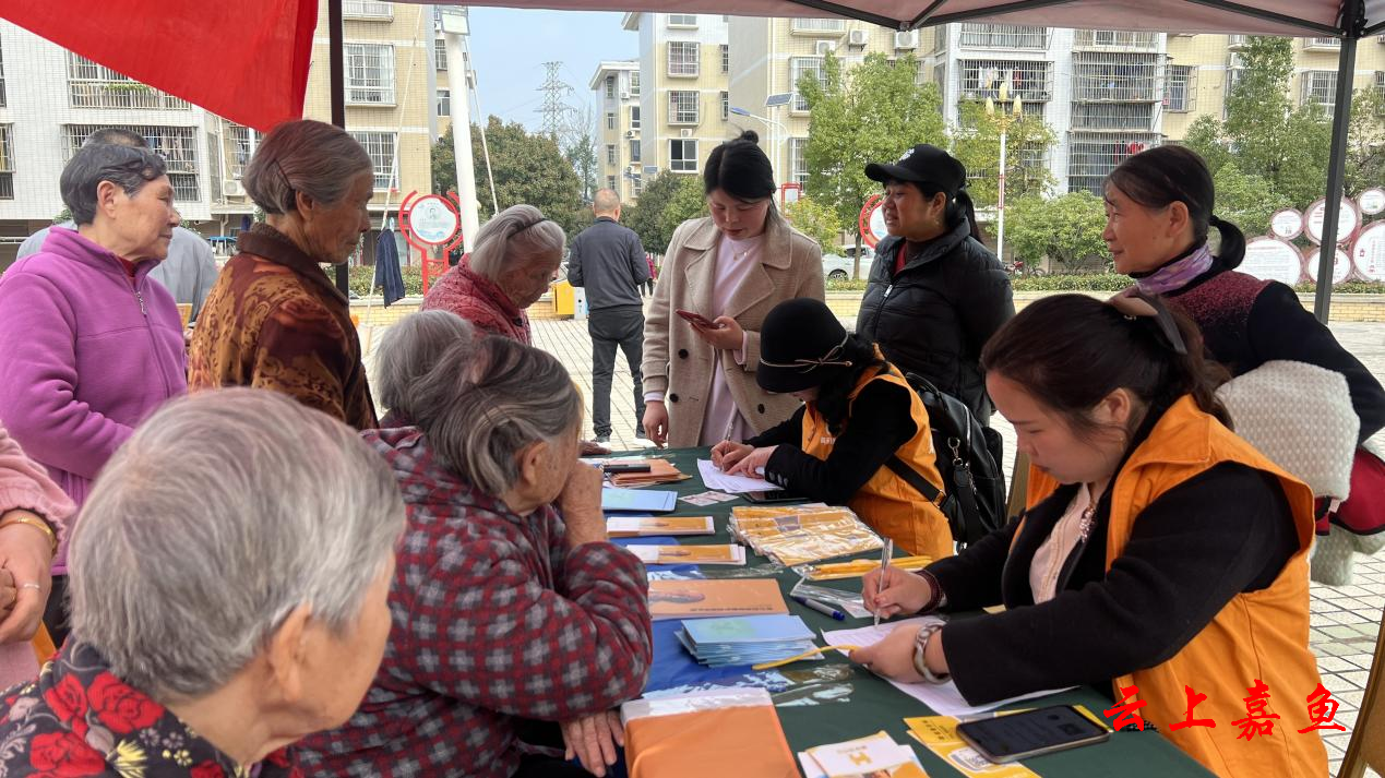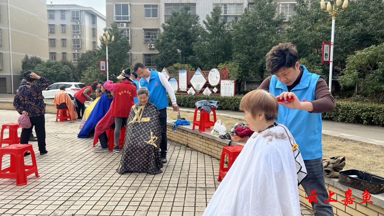 “前面是义剪区,大家可以去那边免费剪头发,左边是义诊区,医生帮助大家免费检查眼睛,测量血压、血糖等,我这里是办理黄手环防走失和宣传防电诈的。”志愿者汪女士说道。