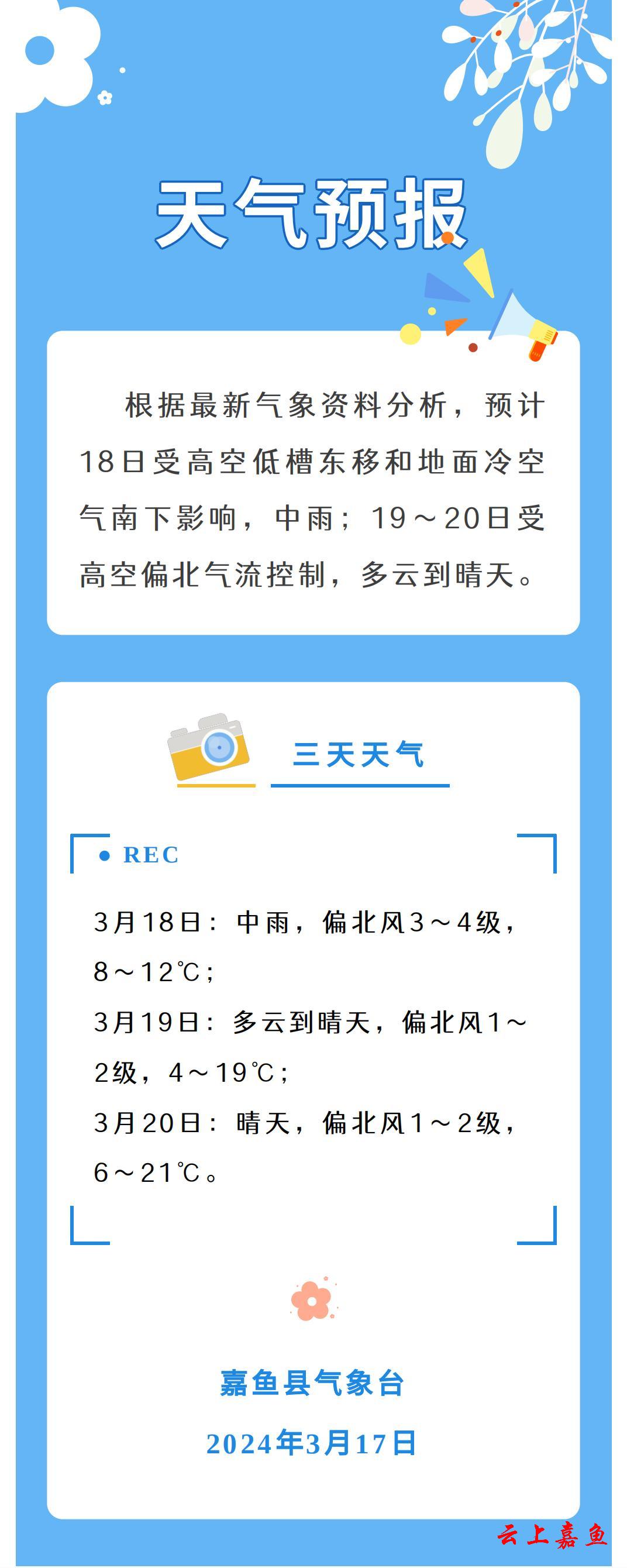 2024年3月17日嘉鱼天气预报