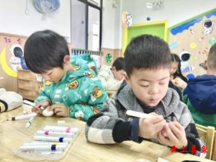 孩子们在户外奔跑着放飞风筝,感受大自然的美好。在“竖蛋”游戏中,孩子们探索多种方法将鸡蛋竖立起来,体验动手操作带来的乐趣,并用彩色画笔在鸡蛋上画出美丽的图案。部分孩子还在家长的指导下,亲自动手做出关于春天的美食。