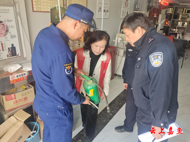 云上嘉鱼报道(通讯员孙梦萍)为切实做好各类安全隐患排查工作,落实安全责任,持续做好辖区“九小场所”安全管理工作,确保辖区人民群众生命财产安全,连日来,嘉鱼县公安局方庄派出所联合县消防救援大队、各社区网格员对辖区“九小场所”开展安全大检查,绷紧安全防范弦。