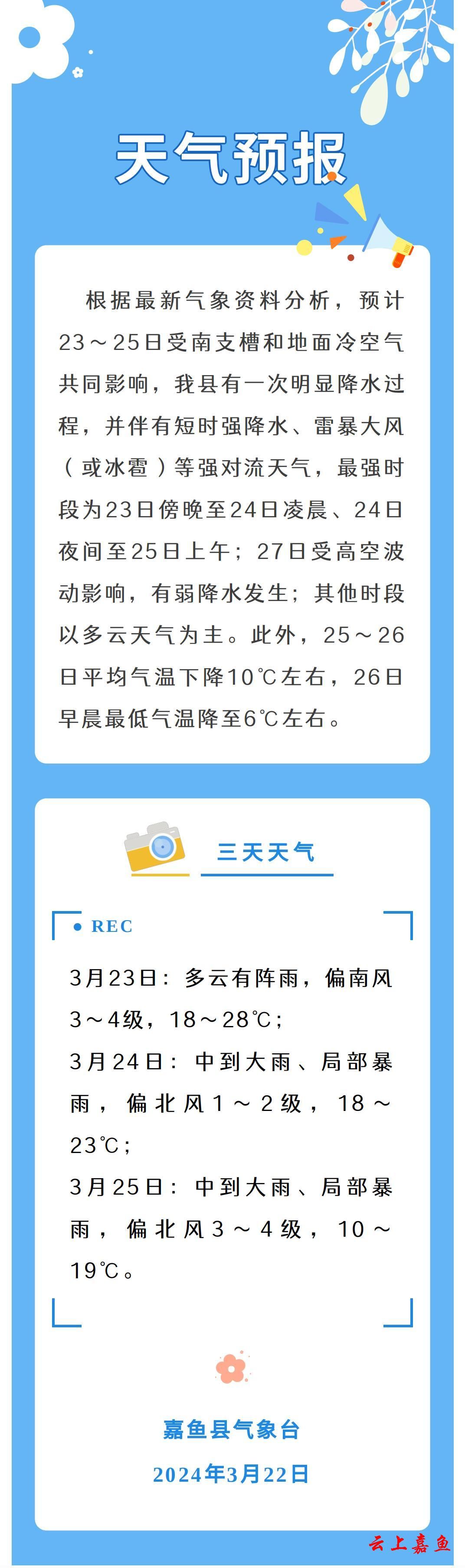 2024年3月22日嘉鱼天气预报
