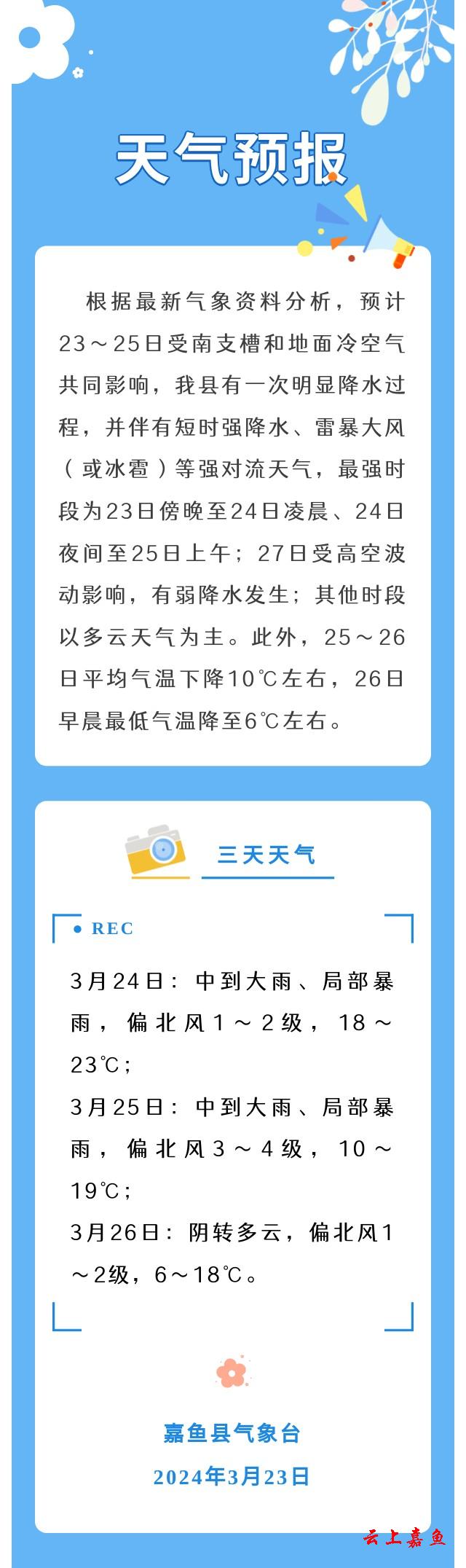 2024年3月23日嘉鱼天气预报