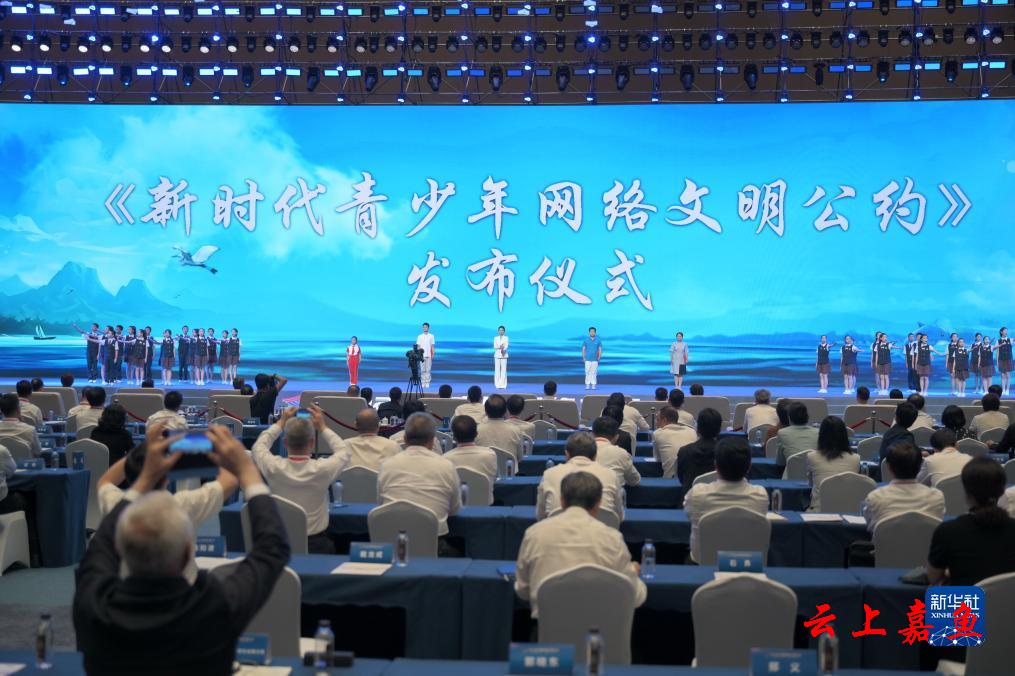 7月18日,2023年中国网络文明大会主论坛发布《新时代青少年网络文明公约》。新华社记者 林善传 摄