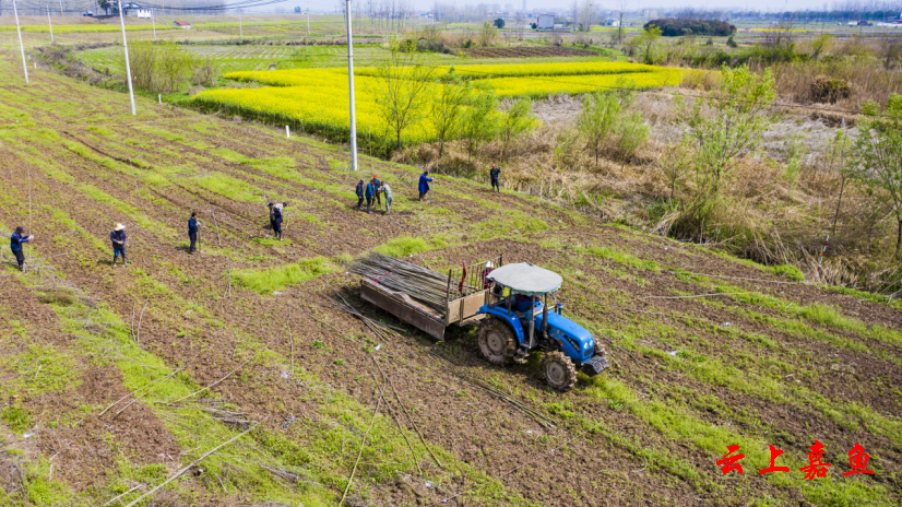 云上嘉鱼报道(全媒体记者雷平)3月28日,记者在嘉鱼县四邑公堤潘家湾管理段江堤内看到,工人们正在栽植防护林丹凤杨。