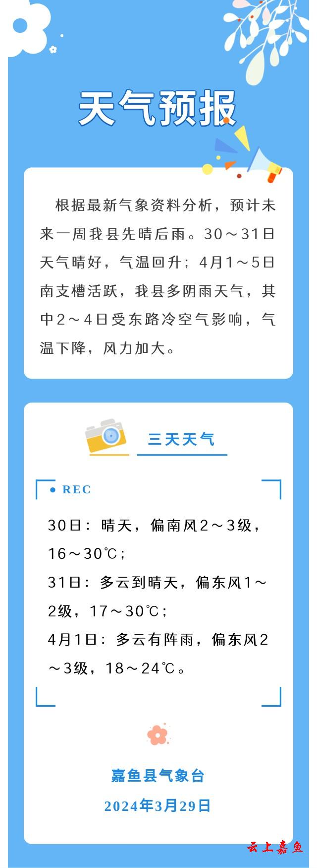 2024年3月29日嘉鱼天气预报