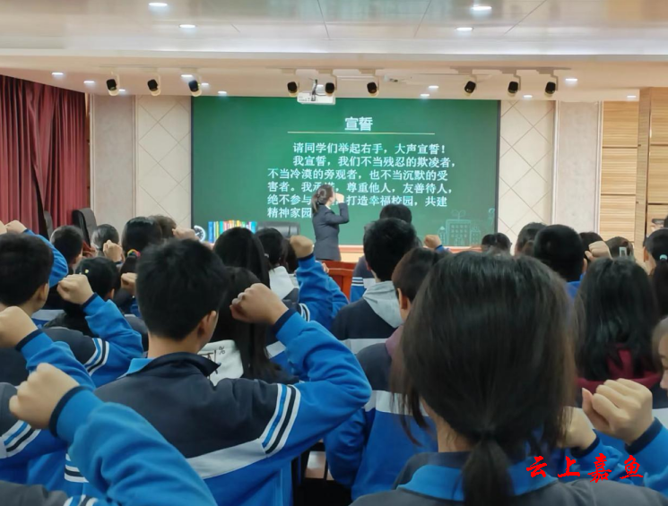 活动中发放了百余份法治教育宣传书刊。“我宣誓,我们不当残忍的欺凌者,不当冷漠的旁观者,也不当沉默的受害者……”同学们在熊方程检察官的带领下举起右手,庄严宣誓。