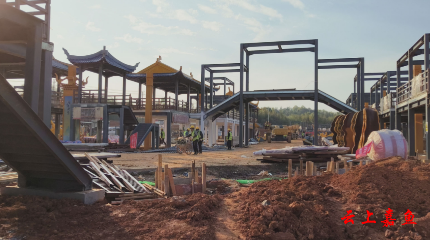 目前,船歌岛景区的基础设施和绿化、景观已经基本完成,望江楼、船歌文化馆、非遗馆、游客中心等主体结构施工已经完成,园区正在进行内部装修装饰施工。停车场、弱电管群、污水管网以及5公里10KV电力线路的迁改施工正在加紧推进,有望在五一期间开园迎客。