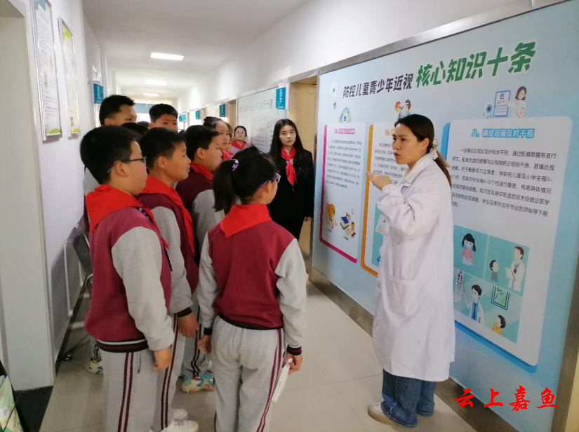 嘉鱼县儿童青少年近视防控中心相关负责人带领队员们参观了眼健康科普教育馆。同学们在专业细致的讲解中,了解了眼睛的结构;在生动有趣的图片中,学习了正确的读写姿势等爱眼护眼好习惯。
