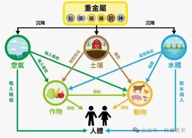 重金属侵入人体的主要途径是食物,而且重金属具有可积累性,自然界中食物链越高端的生物体内重金属积累越多,而人类已经处于食物链的顶端。更为严重的是,人体重金属超标损害机体器官往往是终生、不可逆的,并且重金属在人体内都有富集效应,很难自然排出或彻底去除。有些重金属长期通过食物进入人体,会感干扰人体正常的生理功能,危害人体健康,被称为有毒金属。