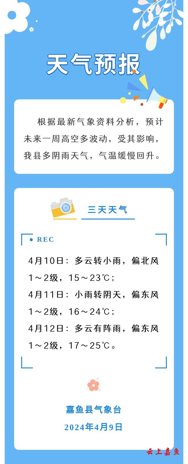 2024年4月9日嘉鱼天气预报
