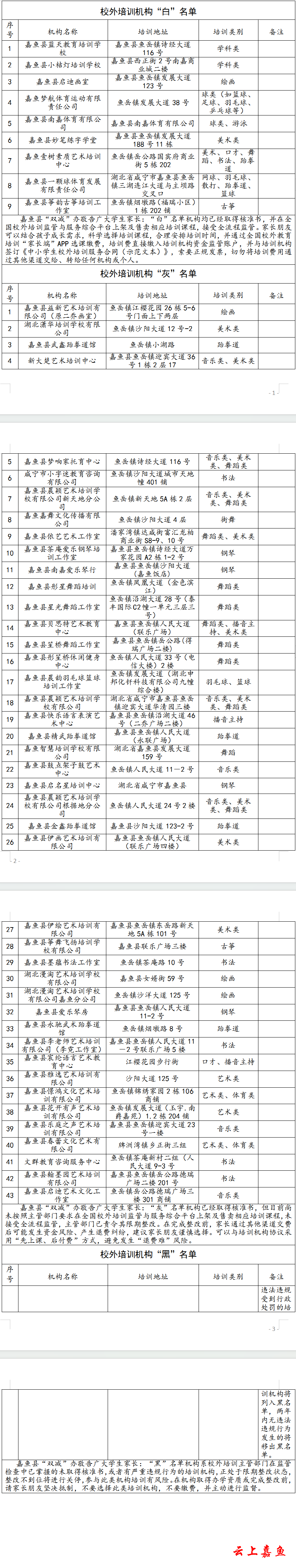 嘉鱼县4月份校外培训机构“白灰黑”名单