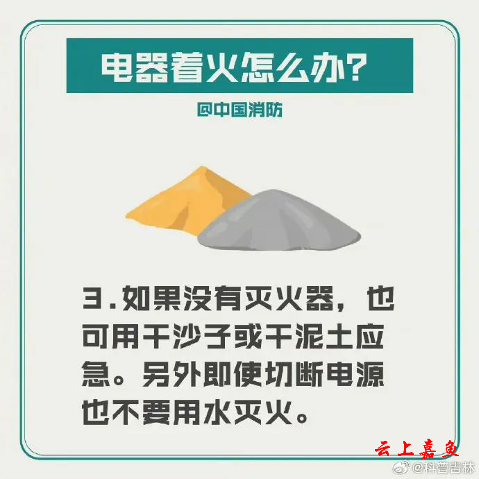 各类家用电器丰富了我们的生活,同时也存在着很多的安全隐患。平时使用时要注意哪些安全事项?遇到电器着火怎么办?戳图了解↓↓