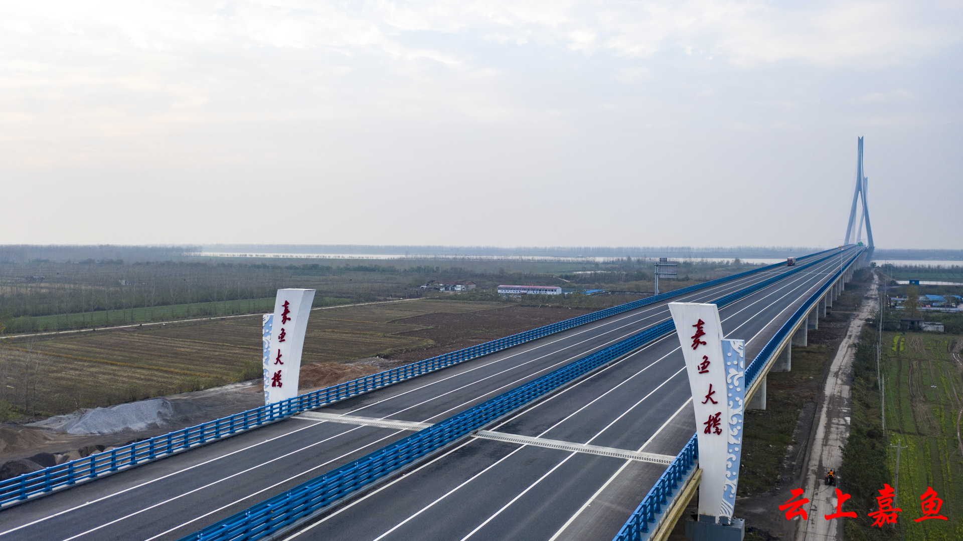 嘉鱼长江公路大桥是武汉都市圈外环高速公路的过江通道,起于新街镇罗家洲村,止于洪湖市燕窝镇团结村。(雷平 摄)