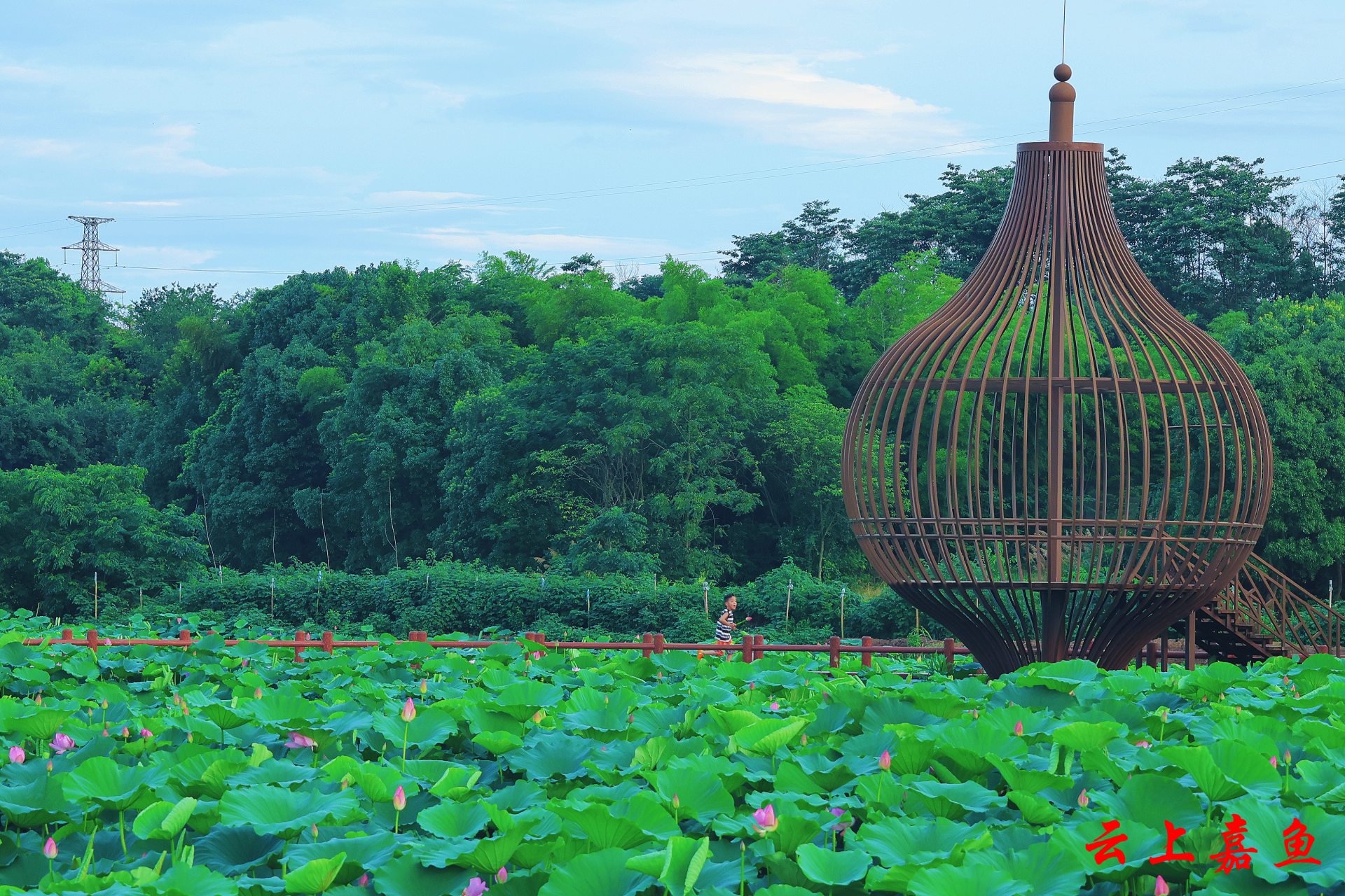 位于新街镇的嘉野生态农业湖地野藕基地的500亩荷塘