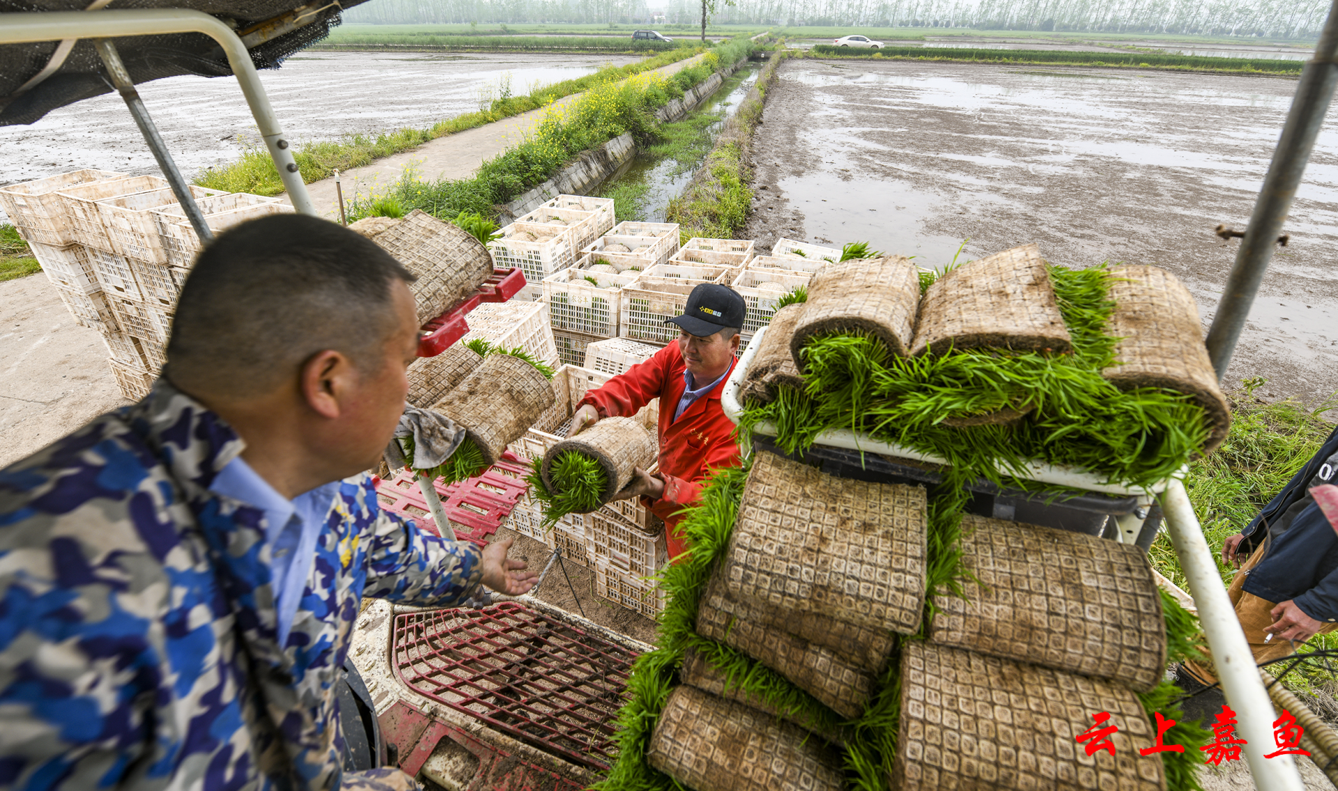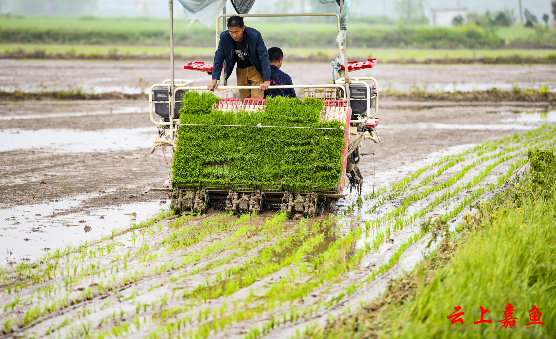 云上嘉鱼报道(全媒体记者雷平 通讯员舒宗友)4月11日,陆溪镇官洲村种粮大户胡四祥的600早稻田里,正在进行机插秧作业。