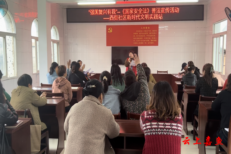 云上嘉鱼报道(全媒体记者皮道琦)4月15日,由嘉鱼县新时代文明实践中心主办、鱼岳镇西街社区新时代文明实践站承办、鱼岳派出所协办的“强国复兴有我”——《中华人民共和国国家安全法》普法宣传及有奖知识竞赛活动在西街社区拉开帷幕,吸引了辖区近30名群众参加。