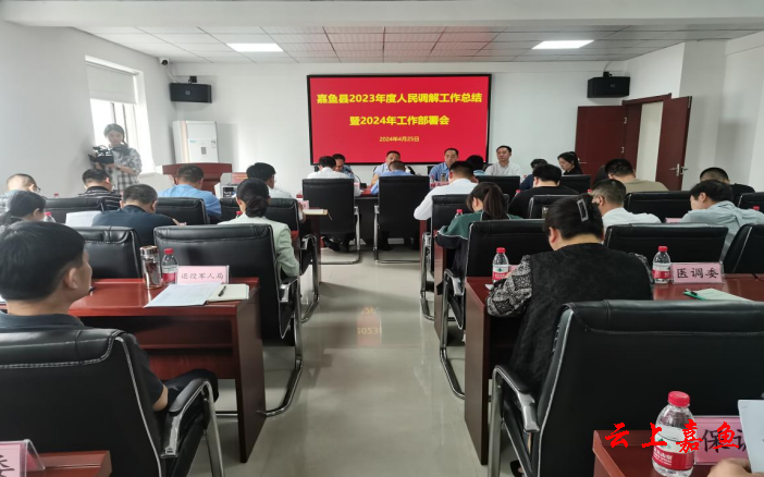 云上嘉鱼报道(全媒体记者邓丹)4月25日,嘉鱼召开2023年度人民调解工作总结暨2024年工作部署会,县委常委、统战部部长、县总工会主席王玉坤出席会议并讲话,副县长、县公安局长易一鹏主持会议。