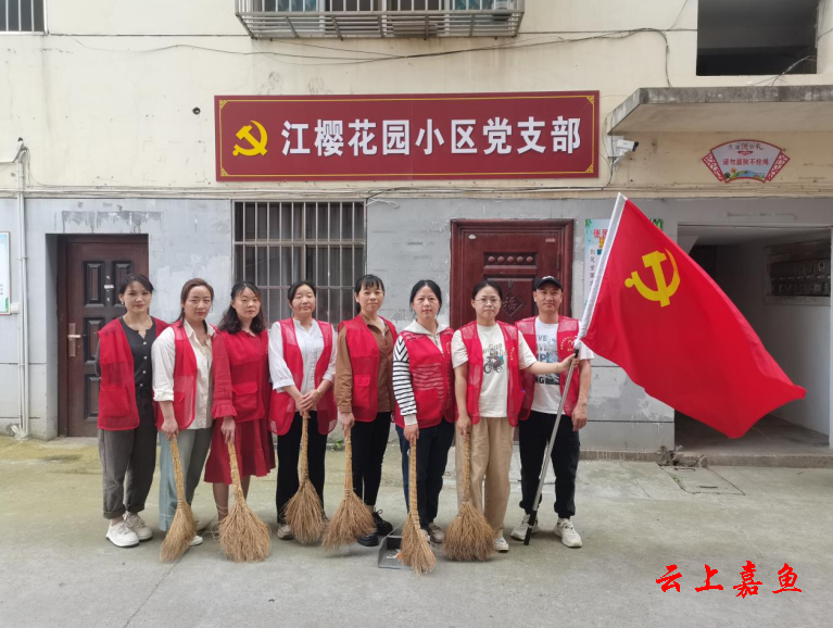 云上嘉鱼报道(通讯员熊会)为营造干净舒适宜居的环境,4月26日下午,鱼岳镇樱花社区党总支组织预备党员、入党积极分子前往江樱花园小区开展爱国卫生大扫除志愿服务活动。