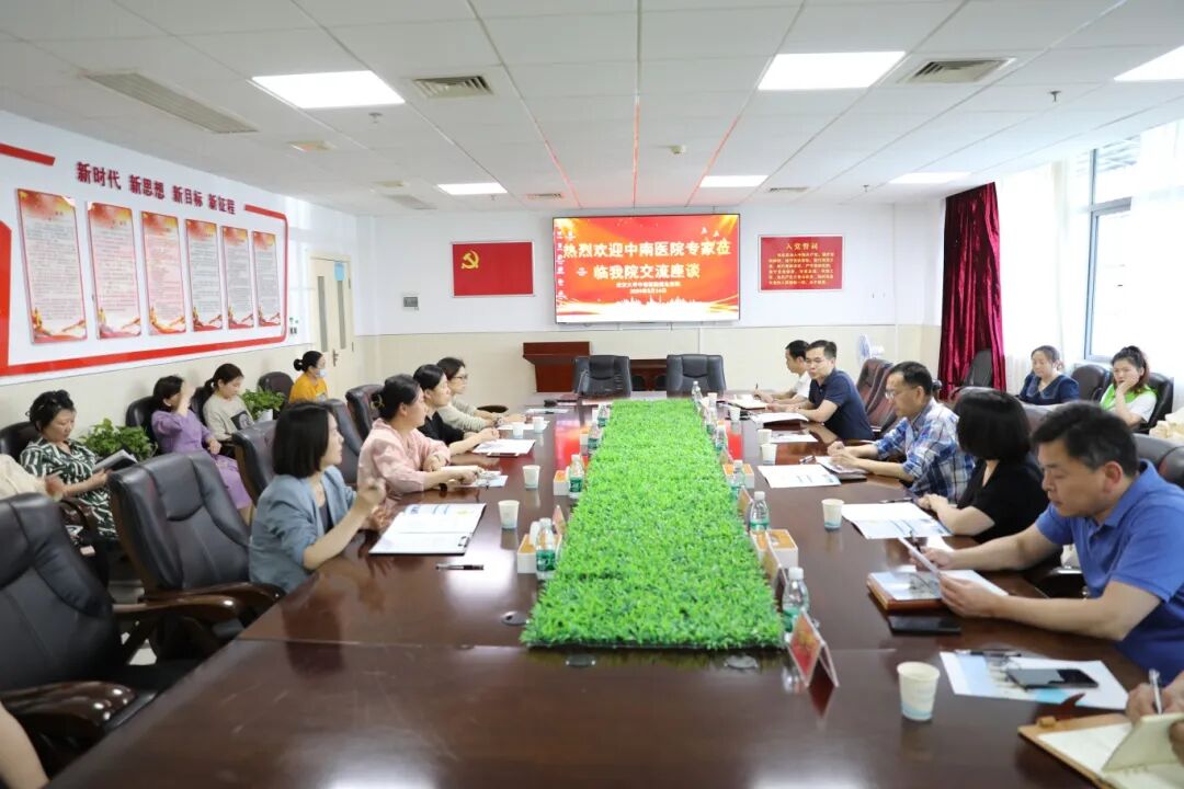 随后我院领导班子成员同武汉大学中南医院张蔚教授、吕琼莹教授。共同针对目前我院妇产科所反映出的新技术业务无法开展、人员调配不合理等问题共同探讨,就如何打通堵点,化解难题提出科学合理的解决方案,为解决妇产科目前发展困难出谋划策。