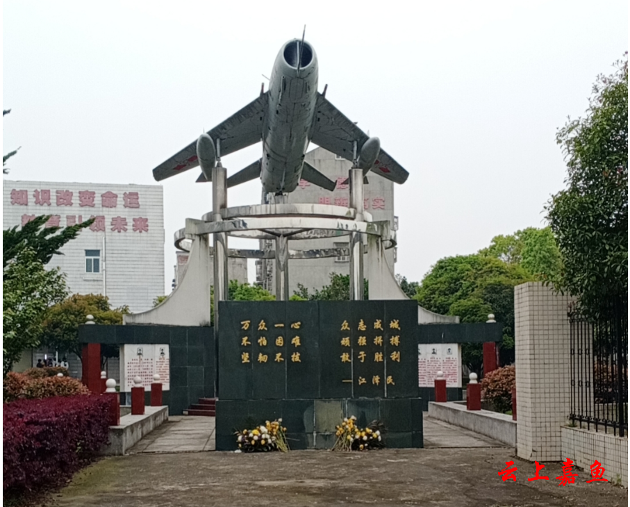 蓝天抗洪英雄纪念碑于1999年8月竣工,占地122.4平方米。青松碧树,环境清幽。碑文刻有时任中共中央总书记、国家主席、中央军委主席江泽民同志“万众一心、众志成城、不怕困难、顽强拼搏、坚韧不拔、敢于胜利”的抗洪精神。主体碑座呈圆形,结构为三根直径约0.3米,高3.5米的金属柱,上置武汉空军捐赠的国产59式歼6型超音速喷气式战斗机一架。基座为金属柱外延三堵墙,墙体为白色花岗岩,正面居中镶嵌十七名空军抗洪烈士遗像,背面刻有其生平事迹,方便清明时节民众前去缅怀英雄。