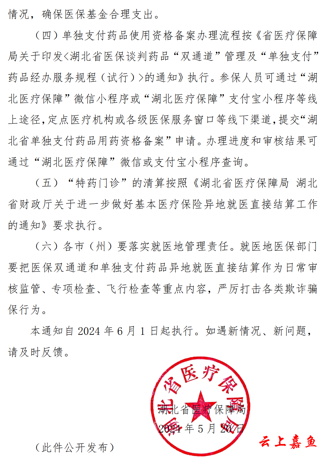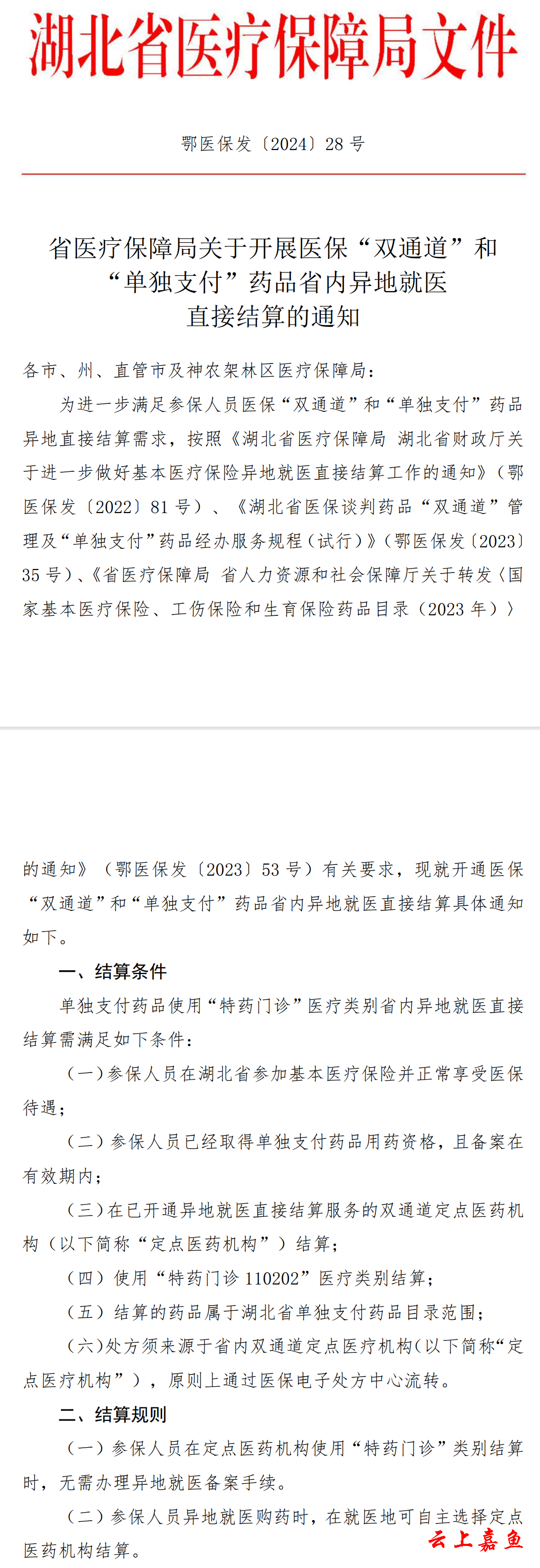 省医疗保障局关于开展医保“双通道”和 “单独支付”药品省内异地就医 直接结算的通知