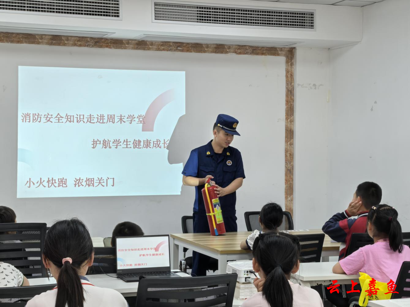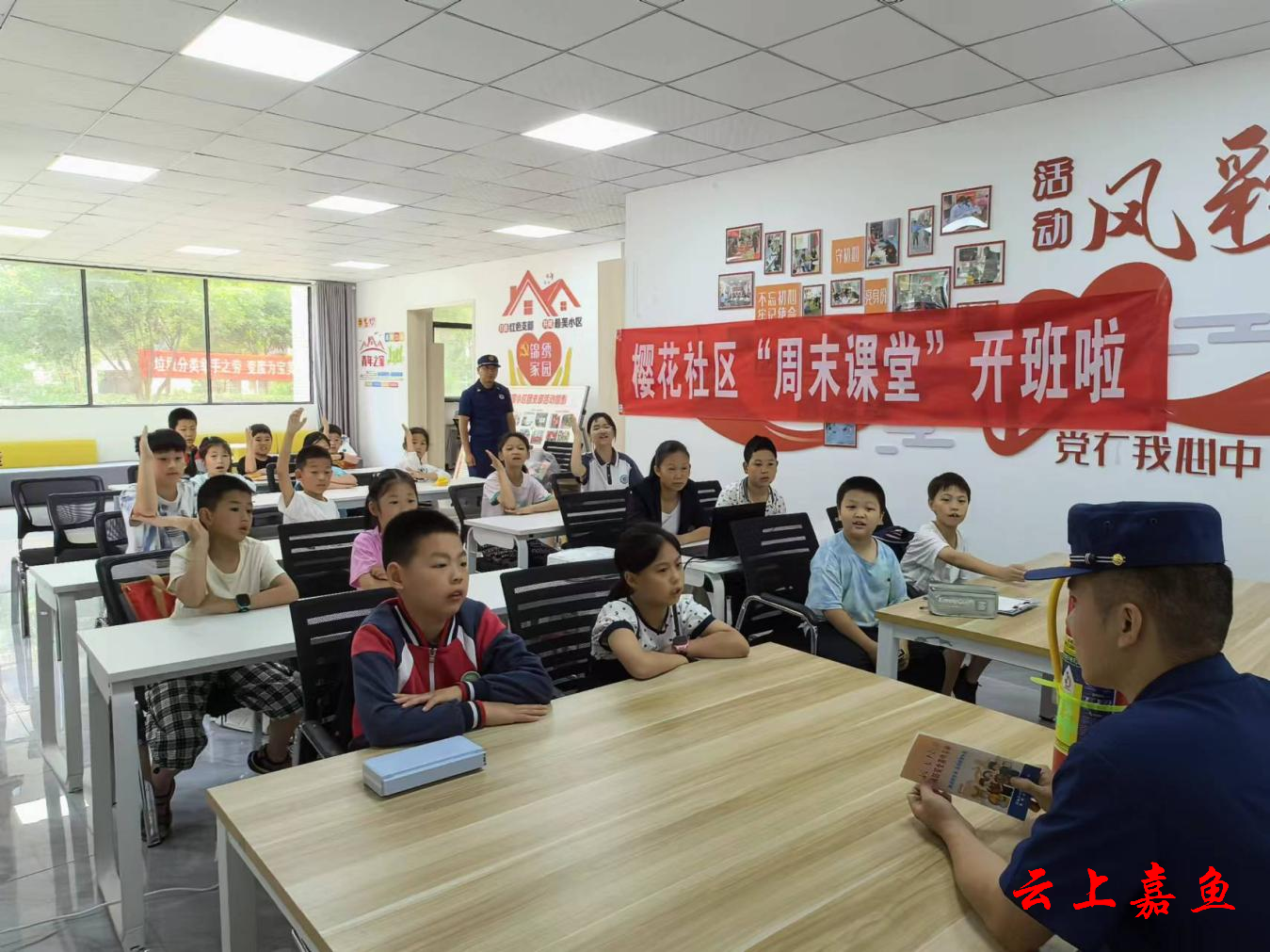 云上嘉鱼报道(通讯员李静)为提高青少年儿童的消防安全意识和自防自救能力,6月1日,共青团嘉鱼县委联合嘉鱼县消防救援大队、鱼岳镇樱花社区少工委在锦绣家园小区组织开展“周末课堂”消防安全知识宣传活动,为孩子们送上一份特别的“六一”礼物。