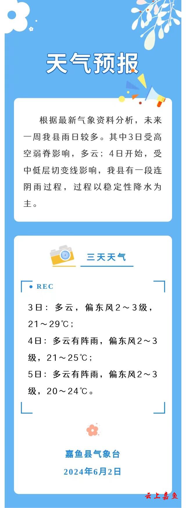 2024年6月2日嘉鱼天气预报