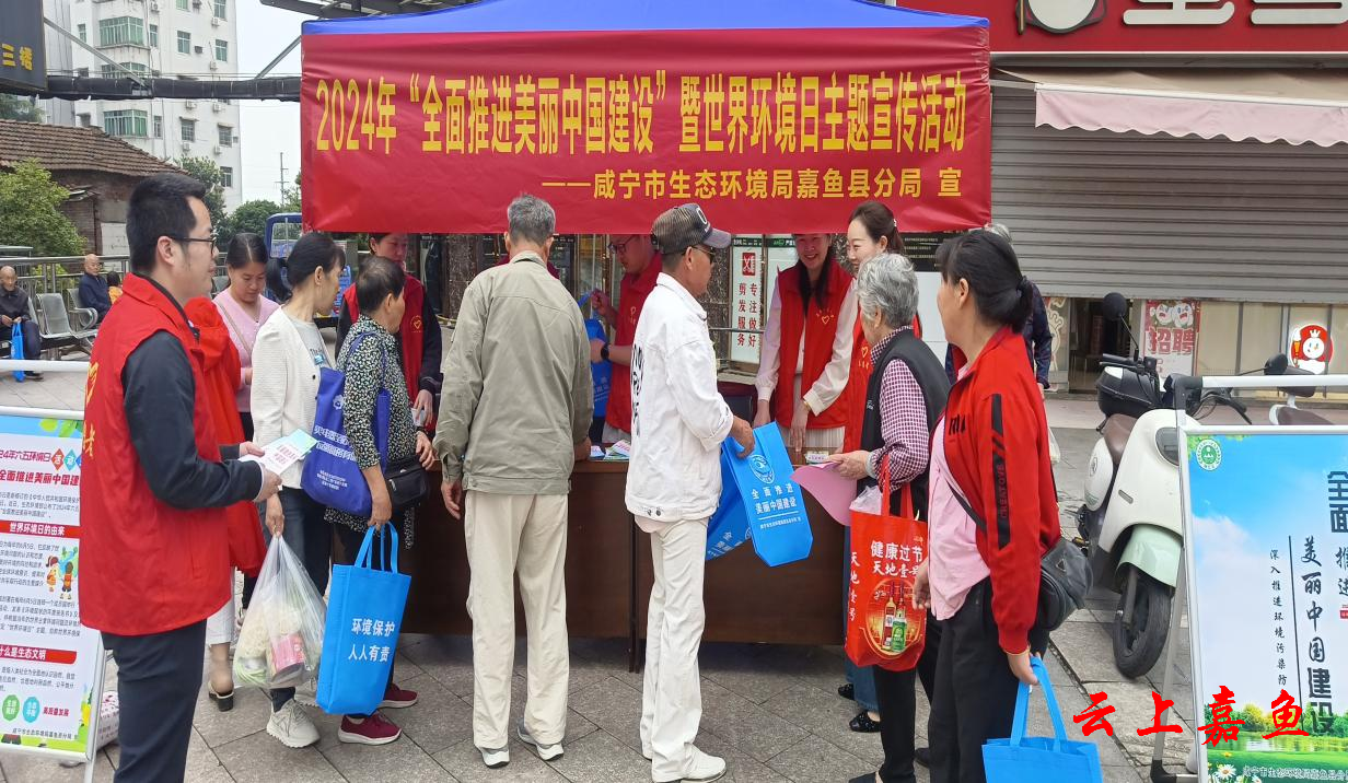 云上嘉鱼报道(全媒体记者皮道琦)6月5日是第53个世界环境日。当天,市生态环境局嘉鱼县分局开展了以“全面推进美丽中国建设”为主题的系列宣传活动。