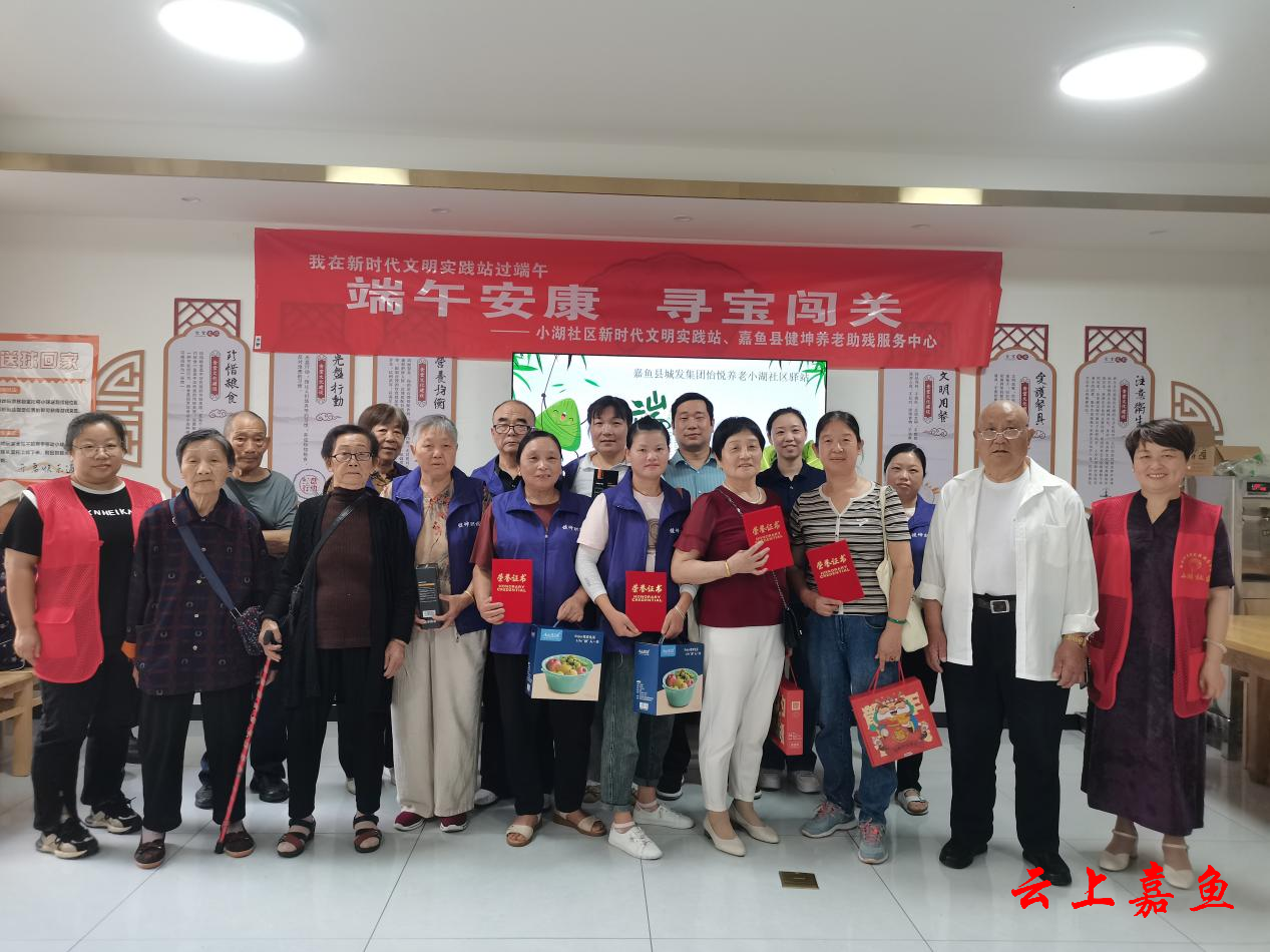 云上嘉鱼报道(全媒体记者邓丹 通讯员周露黎)6月6日,随着端午佳节的脚步渐近,小湖社区党总支、小湖社区新时代文明实践站联合嘉鱼县健坤养老助残服务中心在嘉鱼县城发怡悦小湖社区养老服务驿站,共同举办了一场别开生面的“端午安康,寻宝闯关”主题活动,