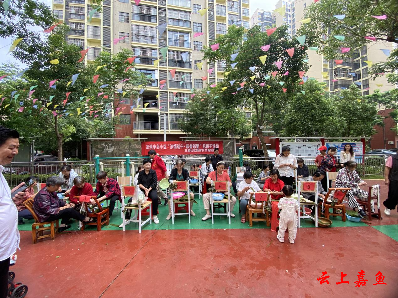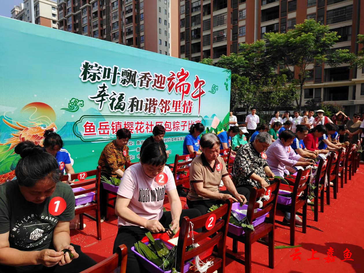 云上嘉鱼报道(通讯员熊会)为弘扬中华优秀传统文化,营造浓厚的节日氛围,6月6日,鱼岳镇樱花社区新时代文明实践站、鱼岳镇文化服务中心、樱花社区团委联合中国人寿嘉鱼县支公司、鱼岳镇人大第三代表小组、社区妇联在锦绣家园小区举办“粽叶飘香迎端午 幸福和谐邻里情”为主题的包粽子比赛。一场“我在新时代文明实践站过端午”活动在一片欢声笑语中举行。