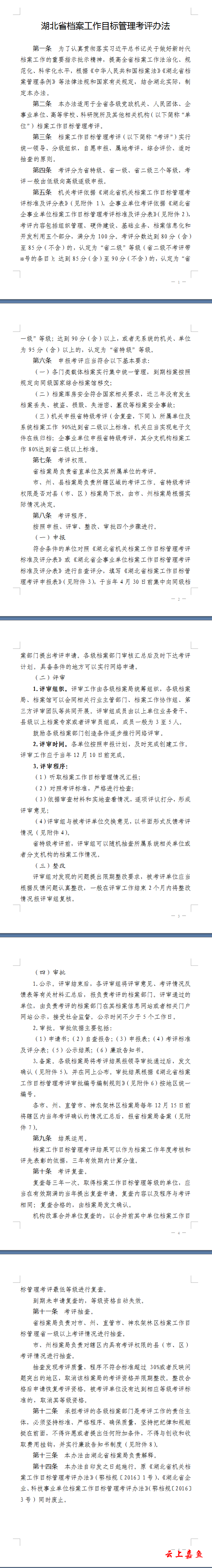 湖北省档案工作目标管理考评办法