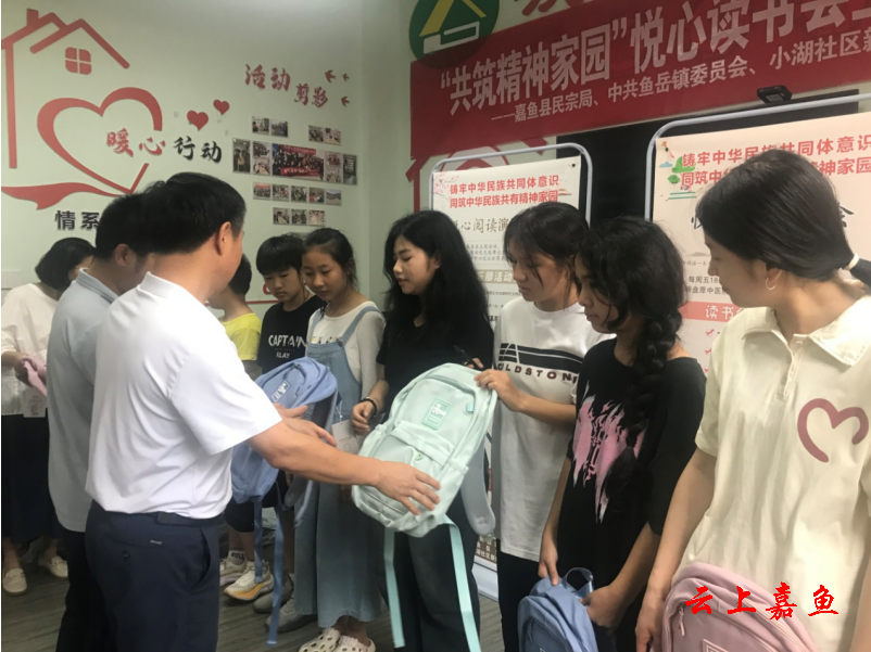 活动中,少数民族群众畅所欲言,从自己生活的所见所闻,畅谈铸牢中华民族共同体意识,努力践行社会主义核心价值观的重要意义。县民宗局、鱼岳镇相关负责人为少数民族的学生们赠送了精美书包。