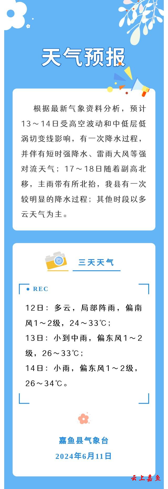 2024年6月11日嘉鱼天气预报