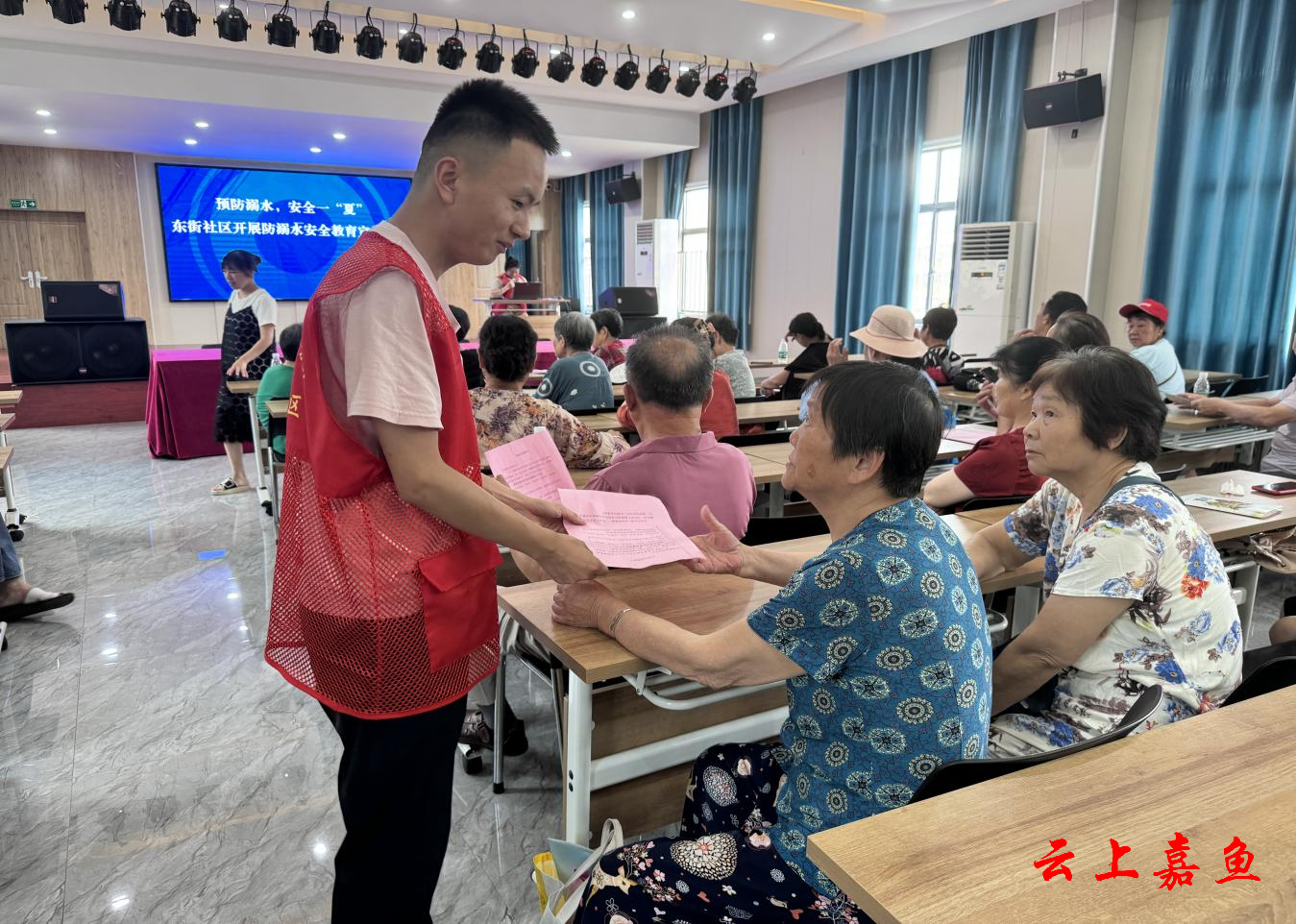云上嘉鱼报道(全媒体记者邓丹 通讯员刘喜)暑期临近,为切实加强夏季防溺水安全教育,增强辖区内居民安全防范意识,预防溺水事件发生,6月14日,鱼岳镇东街社区党组织、社区妇联组织辖区学生家长在社区市民学校开展防溺水安全教育宣传活动。
