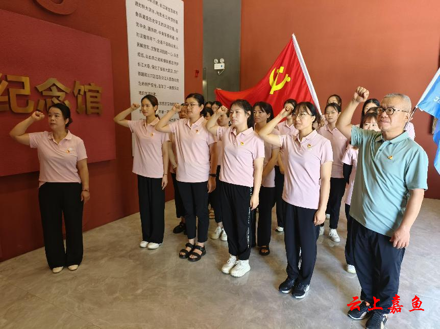 在簰洲湾98抗洪纪念馆,大家观看了《簰洲湾镇九八抗洪纪实》专题纪录片,并跟随解说员的讲解,了解了抗洪抢险中的很多感人事迹,进一步激发了大家对抗洪英雄们的崇敬之情。随后,全体党员教师庄严地重温入党誓词。